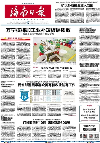 海南日报 头版 001 2017-12-171 2017年12月17日 星期日