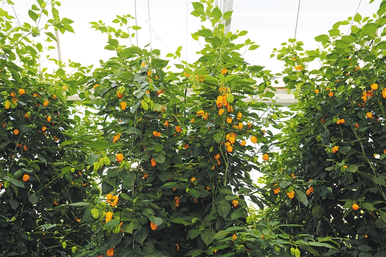 “经过不断的品种改良,现在的黄灯笼椒同时具备‘特辣’和‘香’的突出特点,这是其它辣椒品种不具备的。”肖日新说。
