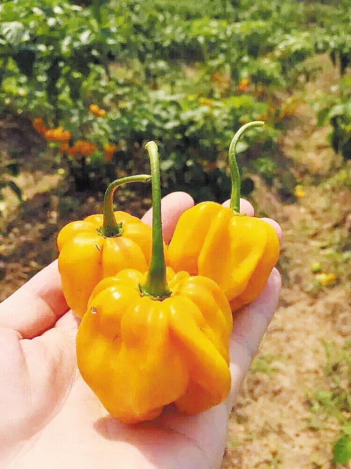 取出一勺黄灯笼辣椒酱,撒上盐,将切好的芒果轻蘸少许,送入口中……陵水市民郑亚谋吃得很享受,“黄灯笼椒配水果,味道特别好!”