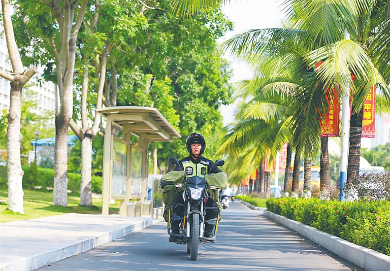 头盔、摩托车、骑行服、骑行靴、睡袋、全套野营设备……说起外出骑行的一系列装备,叶泰山如数家珍。他认为最重要的一件骑行装备是写着“海南陵水”四个大字的反光背心,“这件背心能激励我继续前行,可以告诉沿途的朋友我来自哪里,可以将我的家乡和遥远的他乡联系到一起。”