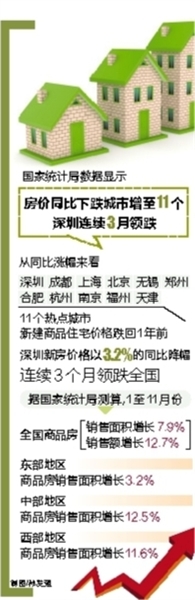 密集调控的效果逐渐开始显现。国家统计局数据显示,4月份开始,热点城市楼市开始降温。5月份,上海和北京出现房价环比“零增长”,深圳房价环比下跌;8月份,15个热点城市房价环比全面止涨,其中北上广深四大一线城市更是33个月以来首现房价集体停涨。继深圳和成都房价8月率先出现同比下跌以来,至11月份,已有11个热点城市新建商品住宅价格低于去年同期水平。
