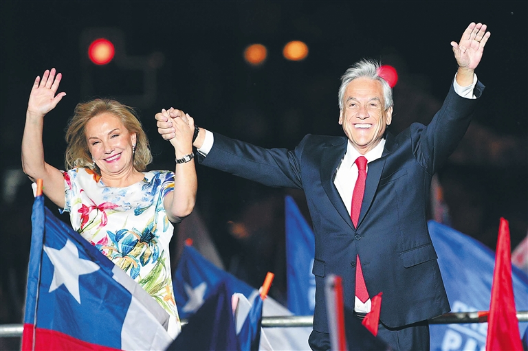 据悉,皮涅拉将于明年3月11日正式就职。在此次大选中,皮涅拉提出的竞选口号是“更好的时代”,承诺致力于发展经济,增加就业,降低企业税,提高工资和养老金水平,打击犯罪,改善治安状况以及提高教育和医疗水平等。
