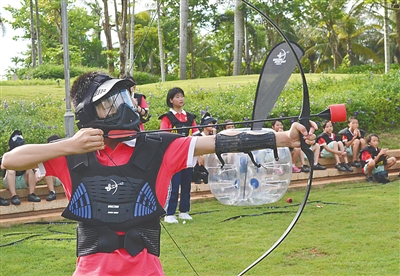 “攻防箭是小众运动,历史不长,没想到也能获得不少海南家长和孩子的青睐。”海南攻防箭联盟主席谢非说,他们团队今年年初开始将攻防箭运动引进海南,近一年来,大约有两万人参与培训,其中有一部分是中小学生。