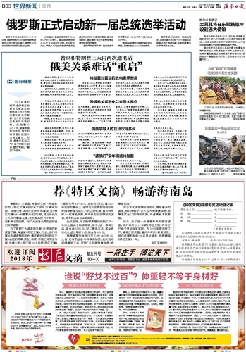 海南日报 世界新闻综合 015 2017-12-191 2017年12月19日 星期二