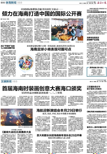 海南日报 体育新闻 文娱新闻 018 2017-12-191 2017年12月19日 星期二