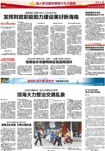 海南日报 深入学习宣传贯彻十九大精神 002 2017-12-191 2017年12月19日 星期二