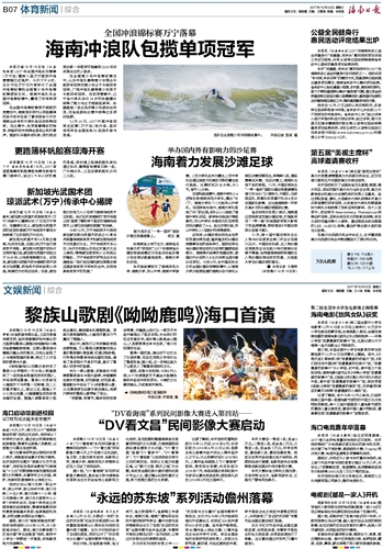海南日报报业集团旗下媒体: 海南日报 |南国都市报 |南海网 |南岛晚报 |证券导报 |法制时报 |海南农垦报 设为首页