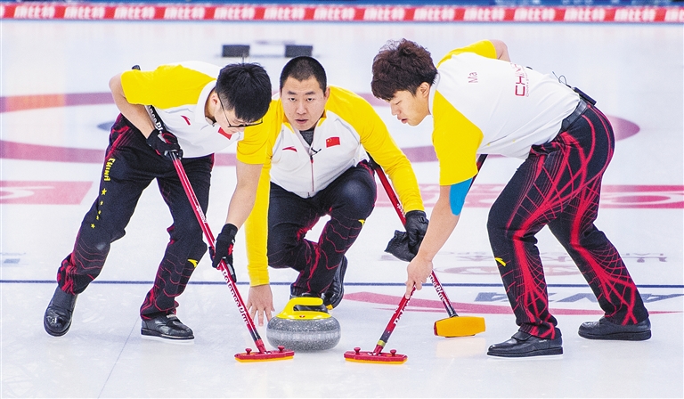 20日,2017年中国青海国际冰壶精英赛继续在青海省多巴国家高原体育训练基地进行,中国男队以8:9不敌苏格兰男队。 新华社发