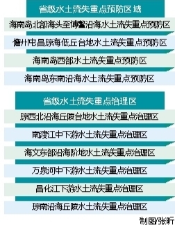 据了解,海南岛全域为水土流失易发区域,生产建设项目要依法采取水土保持预防治理措施,有效控制人为水土流失。要以全省水土保持区划为依据,全面实施预防保护措施,加大江河源头区、重要水源地和海岸带及附属岛屿预防保护力度;以小流域为单元加强水土流失重点防治区和其他水土流失严重区域的综合治理。