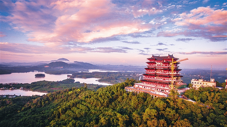 儋州人或到过儋州的许多人题诗作对时,乐于将儋州书作“儋阳”。“儋阳”成为文人墨客竞相吟咏的意象。明代劳翱《登载酒堂》云:“儋阳景色夏如春,学士堂开瘴海滨。”清代文冠斗《八景合咏》云:“儋阳春色竞河阳,翠点松林晚倍芳。”苏东坡故居桄榔庵重建落成时,清代李文彬即兴写下“天教远谪非无意,儋阳从此文风被”的诗句。如今,以“儋阳”命名的儋阳路、儋阳街等,在儋州并不少见。图为儋阳楼全景。 文/本报记者 易宗平 图/特约记者 吴文生
