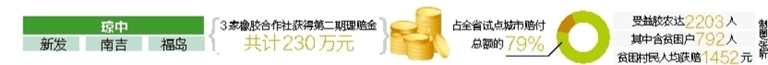 琼中是国家级贫困县,天然橡胶“保险+期货”试点工作得到了琼中县政府的关注和支持,琼中与人保财险海南省分公司及国泰君安等3家期货公司合作,将县内有贫困户加盟的合作社的1500吨橡胶,分别以1.661万元/吨的价格投保150吨;1.51万元/吨的价格投保750吨、1.434万元/吨的价格投保600吨。