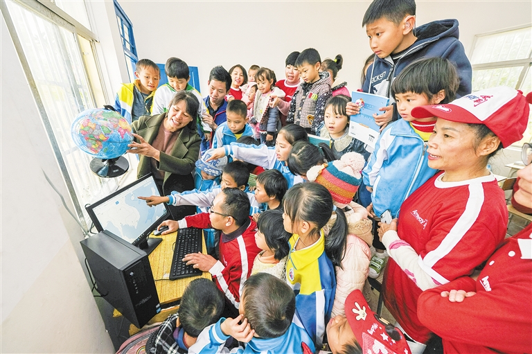 “孩子们,我们美丽的海南在哪里?”12月21日,在琼海市会山镇加略小学,教师李少萍和志愿者一起,给孩子们上了一节生动的地理课。当天上午,安利志愿者为加略小学的孩子们送去电脑、书籍、地图等教学物品。