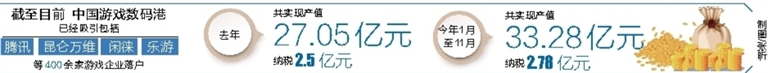 据了解,伴随着海南的生态环境、政务环境、投资环境优势日益凸显,位于海南生态软件园内的中国游戏数码港截至目前已经吸引了包括腾讯、昆仑万维、闲徕、乐游等400余家游戏企业落户。去年,中国游戏数码港共实现产值27.05亿元,纳税2.5亿元;今年1月至11月,该数码港共实现产值33.28亿元,纳税2.78亿元。