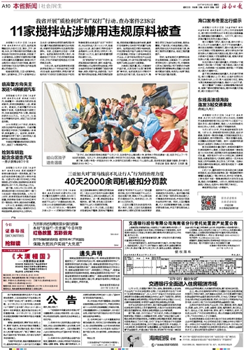 海南日报报业集团旗下媒体: 海南日报 |南国都市报 |南海网 |南岛晚报 |证券导报 |法制时报 |海南农垦报 设为首页