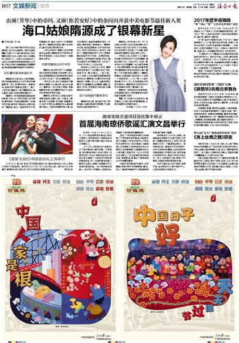 海南日报 文娱新闻综合 019 2017-12-221 2017年12月22日 星期五
