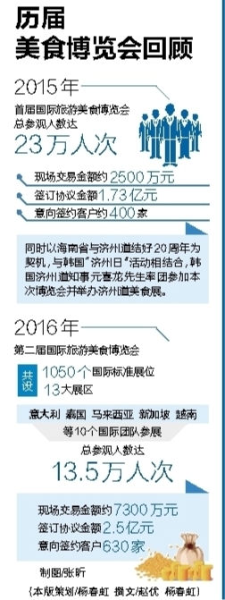 据本届旅游美食博览会组委会相关负责人介绍,经中国烹饪协会认定,海南国际旅游美食博览会是中国目前唯一的以旅游美食为主题的大型展会,也是中国规模最大的国际旅游美食博览会。
