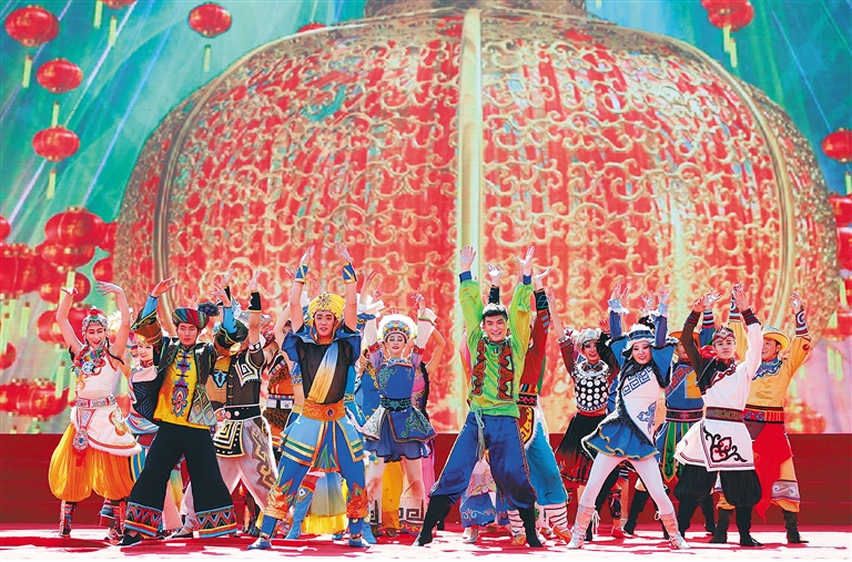 今日的陵水河畔熠熠生辉,珍珠海岸璀璨耀眼。中央民族歌舞团慰问演出拉开帷幕。身穿不同民族服饰的舞蹈演员踏着快乐舞步,传递出节日的喜庆。来自纳西族、藏族、朝鲜族、维吾尔族等民族的歌唱家们,用一首首经典曲目带来了各族人民的美好祝福。省民族歌舞团表演的舞蹈《丰收》,展现出黎族人民丰收的情景,表达出丰收的喜悦。