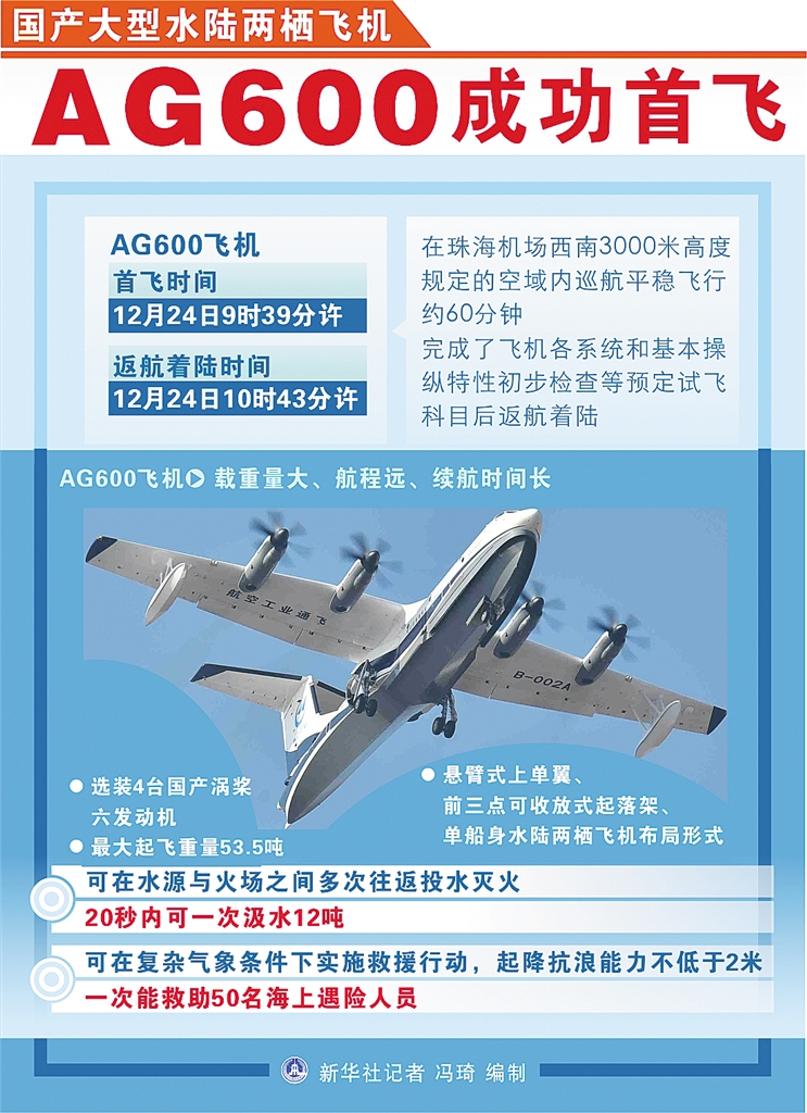 它可以在复杂气象条件下作业,一次性救助50名海上遇险者;它可以通过在水面上20秒的滑行一次汲水12吨,单次投水救火面积4000余平方米,实现在水源与火场之间往返投水灭火。