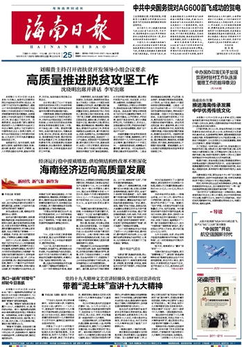 | 海南日报 头版 001 2017-12-251 2017年12月25日 星期一 |