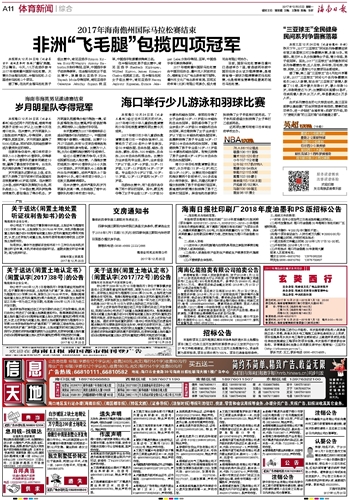 海南日报 体育新闻综合 011 2017-12-251 2017年12月25日 星期一