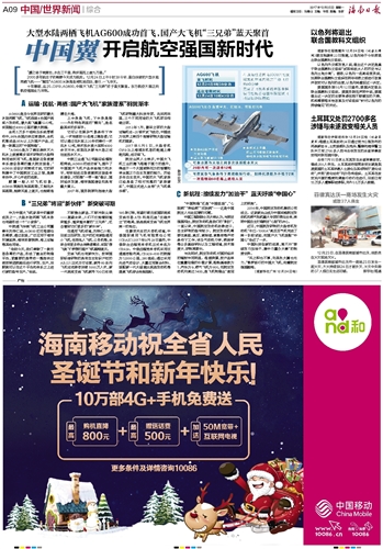 | 海南日报 中国/世界新闻综合 009 2017-12-251 2017年12月25日 星期一 |