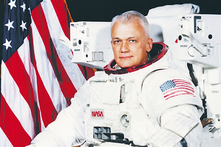 麦坎德利斯1984年2月搭乘“挑战者”号升空,在8天的飞行任务中,首次进行了不系带太空行走,留下“漫步太空”的经典图像。当时,他背负形似火箭背包的太空载人机动装置,距离航天飞机近100米,像卫星一样以2.9万公里时速与航天飞机一起环绕地球“飞行”。新华社发