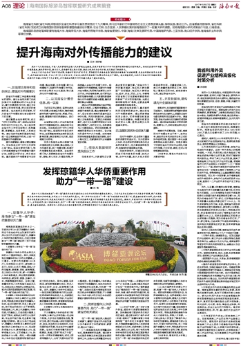 发挥琼籍华人华侨重要作用 助力“一带一路”建设