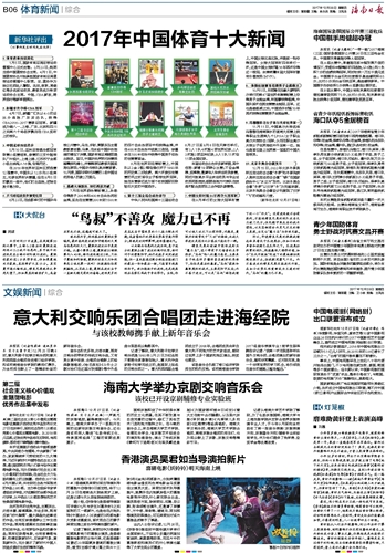 海南日报 体育新闻 文娱新闻 014 2017-12-281 2017年12月28日 星期四
