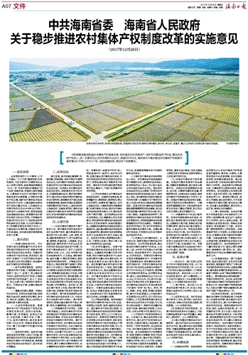 中共海南省委 海南省人民政府 关于稳步推进农村集体产权制度改革的实施意见