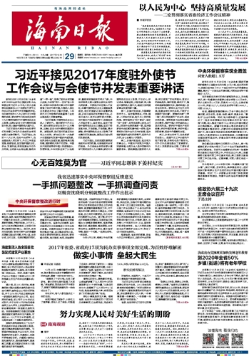 海南日报 头版 001 2017-12-291 2017年12月29日 星期五
