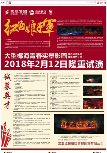 大型椰海青春实景影画 2018年2月12日隆重试演