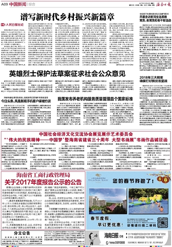 海南日报 中国新闻综合 009 2017-12-301 2017年12月30日 星期六