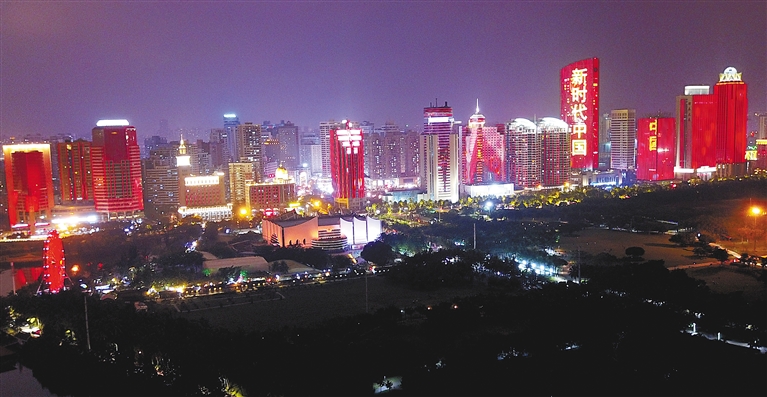 去年,海口启动城市亮化工程,目前海口湾209栋楼宇亮化工程和海府路、国兴大道、龙昆南等21.9公里的绿化带亮化工程已实施完成。如今,每逢节日,夜幕降临时,海口滨海大道边的楼宇都会“穿”上绚丽多彩的灯光“晚礼服”,为市民游客带来一场场灯光秀。 文/本报记者 计思佳 图/通讯员 黄一冰