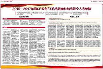感谢为“双创”辛勤付出的干部、广大市民、热心志愿者。在800多个刻苦攻坚、冲刺决战的日日夜夜里,全市干部职工及全体市民以高度的主人翁责任感和荣誉感,积极投身“双创”。像守护自己的小家一样守护着海口这个“大家”,像维护自己的形象一样维护着海口的形象,掀起了一轮轮“双创”工作热潮,涌现出一批批先进典型,凡人善举遍布全城。经海口市委、市政府研究决定,在2017年12月29日召开的海口市“双创”工作总结表彰大会暨“净化、绿化、彩化、亮化、美化”工作动员会上,对507家单位、1678名先进个人进行表彰。