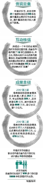 本届欢乐节是历年来规模最大、层次最高、参加人数最多的一届,为期一个半月覆盖全岛的118项活动,受到国内外游客和海南百姓的热捧,充分体现了欢乐节作为海南宣传旅游新业态、营销旅游新产品、推出旅游新线路、创造旅游新效应的大平台功能,全面展示了海南旅游发展成果。