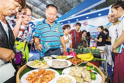 海南椰城昌茂绿色食品股份公司副总经理刘昕艳告诉记者,此次参展公司带来了海产品干货、酱菜等多个品种的海南旅游特色产品,开幕式当天现场销售3万多元,网上预订销售额达5万多元。
