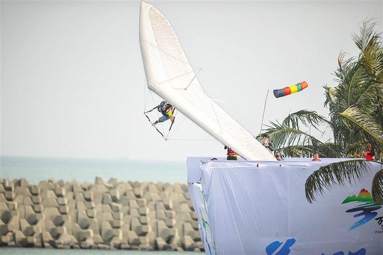 当天的比赛分竞技类和意趣类两个项目赛。在竞技类项目比赛中,广西桂林选手卢志峰驾驶“时代新人号”三角翼,靠逆风升力飞出一段距离后,又迎风推杆冲向高空,在空中划出一道完美的飞行曲线。他以娴熟动作飞出46.3米的最远距离,夺得大赛当天比赛的冠军。广西柳州选手袁鑫灵,在飞出平台时双翼失衡触碰平台,但他反应灵敏迅速调整恢复平衡,在空中滑行后半程表现出色,以36.3米获得第二名。另一名广西柳州选手黎阳康,以33.9米飞行距离的上佳表现,排在第三名。