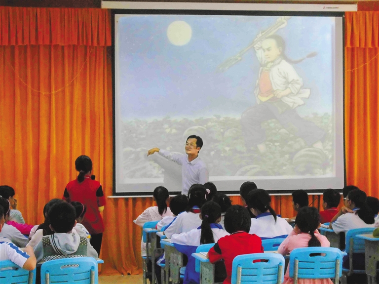 教学中,我发现,孩子们很喜欢听故事。我就利用周末时间,在全班微信群里分享自己听到和看到的故事。从此以后,我和孩子们经常共读一本书,分享故事精彩片段。学习过程中,我们同读了很多书:《蜗牛屋》《好脏的哈利》《莎莎的月光》《安徒生童话全集》等等,一个学期分享了这么多故事,慢慢孩子说顺了,胆子大了,写作自然也生动了!此外,我们还共同分享儿童诗作品,例如雪野老师《爱读书的树叶》《有礼貌的百足虫》,聪善老师《一只毛毛虫》《小蚂蚁的船》等。我们还听海口滨海九小学生张可佳的朗读。在课堂上播放有声有色的朗读作品后,班里的孩子就安静了,以后更喜欢看书写作。他们还动手写儿童诗。学生习作《公交车》《抓山鸡》《老师,你辛苦了》《外婆的歌谣》等儿童诗刊登在《南国都市报》习作栏目。