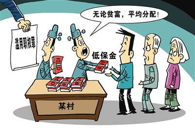 低保金,是贫困群众的“救命钱”,将低保金按人头一分了之,看似公开透明、简单省事,而实际上却寒了贫困户的心,糟蹋了扶贫资金,与中央精准扶贫的理念背道而驰。扶贫资金,是帮扶贫困群众的专用资金,数额原本就不多,分到人头上更少之又少,因此使用起来必须精准,每一分一厘都要用在刀刃上。扶贫,是雪中送炭,不是锦上添花,“雨露均沾”的那一套实在要不得。这正是: