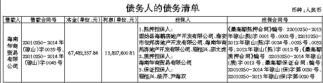 注:1、下表中的利息暂计算至2016年5月20日;2、若借款人、担保人因各种原因更名、改制、歇业、吊销营业执照或丧失民事主体资格的,请相关主体及/或主管部门代位履行义务或履行清算责任;3、清单中“担保人”包括保证人、抵押人、出质人、担保人的担保范围以签署的合同或法院判决等法律文书为准。