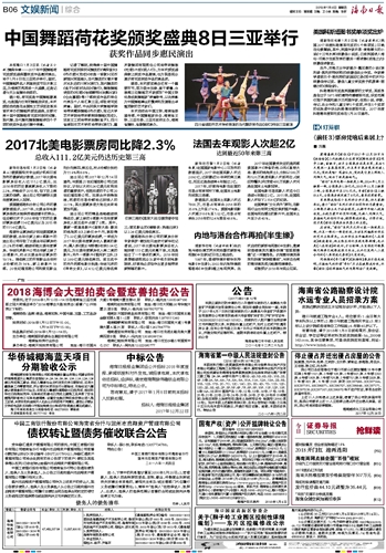 海南日报 文娱新闻综合 014 2018-01-041 2018年01月04日 星期四