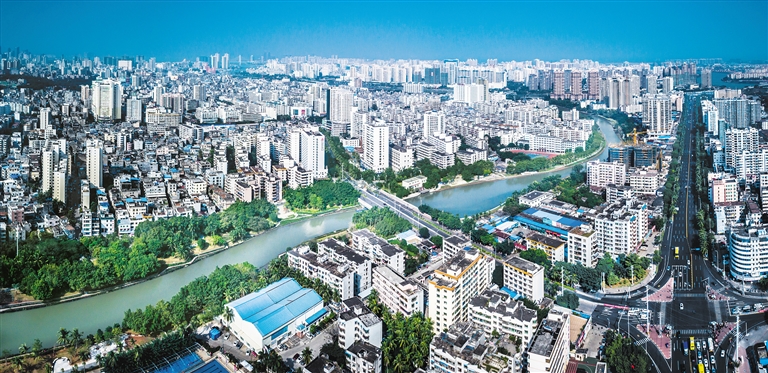 这个月,美舍河治理工程二期国兴段到长堤段就将完工。将施工阻断的河水连通起来,漫过红树尚稚嫩的树干,河道呈现一片生机盎然。此时将无人机升至楼宇上空,再俯瞰美舍河,画面里是一条水岸融合、蓝绿交织的长廊穿过城市的水泥森林。