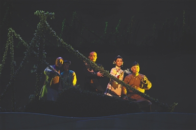 “茶道漫漫发汉江,试问江长与道长?”茶道绵延万里,海口的观众们可以跟随“大河兴”商号茶队的脚步,领略万里茶道上的不同风貌。该剧的舞美、灯光灵活运用各种线条,并融入现代多媒体,为观众营造了茶道沧桑开阔的意境,充满写意之美。