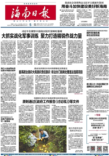 海南日报 头版 001 2018-01-051 2018年01月05日 星期五