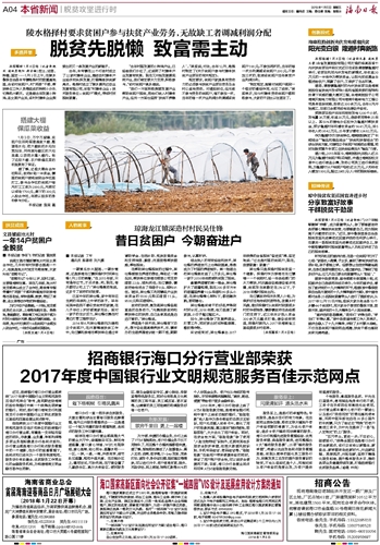 海南日报 本省新闻脱贫攻坚进行时 004 2018-01-051 2018年01月05日 星期五