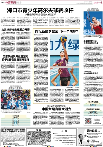 海南日报 体育新闻综合 007 2018-01-061 2018年01月06日 星期六