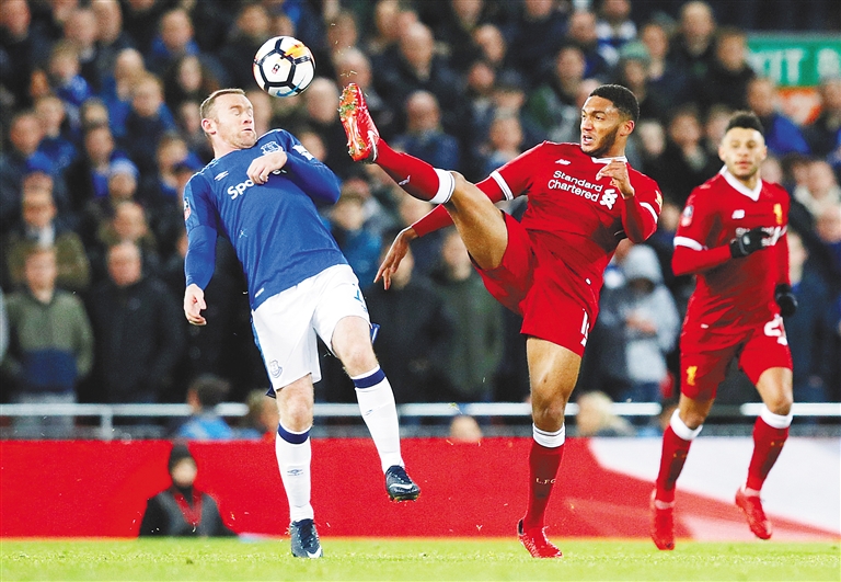 1月6日,在英格兰足总杯第三轮比赛中,利物浦队主场以2:1战胜埃弗顿队。图为埃弗顿队鲁尼(左)与利物浦队戈麦斯在比赛中争抢。新华社发
