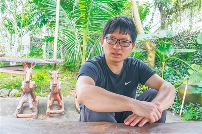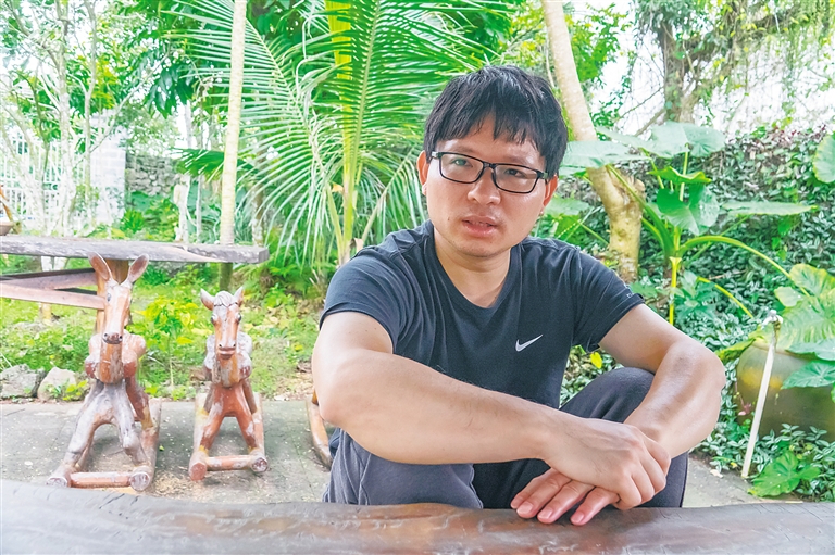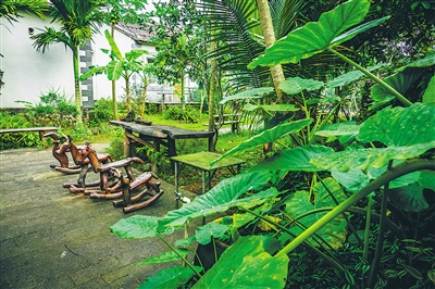 近日,在位于海口市秀英区永兴镇的博学村,伴着淅淅沥沥的小雨,海南日报记者和陈统奎在他的民宿“花梨之家”聊起了他的再造故乡心路。