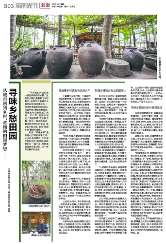 他说,“田园梦想”是他用心打造的诚意之作。从乡村走进城市,又从城市回到乡村,蒋翔说,其实他初心一直不改,那就是留住美好的记忆,过一种自己喜欢的生活。