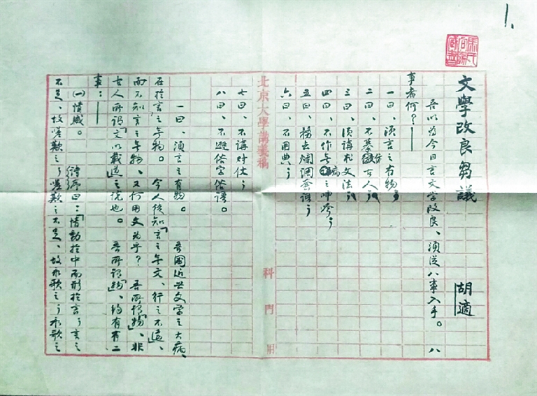 ……上述八事,乃吾年来研思此一大问题之结果。远在异国,既无读书之暇晷,又不得就国中先生长者质疑问题,其所主张容有矫枉过正之处。然此八事皆文学上根本问题,一 一有研究之价值。故草成此论,以为海内外留心此问题者作一草案。谓之刍议,犹云未定草也。伏惟国人同志有以匡纠是正之。